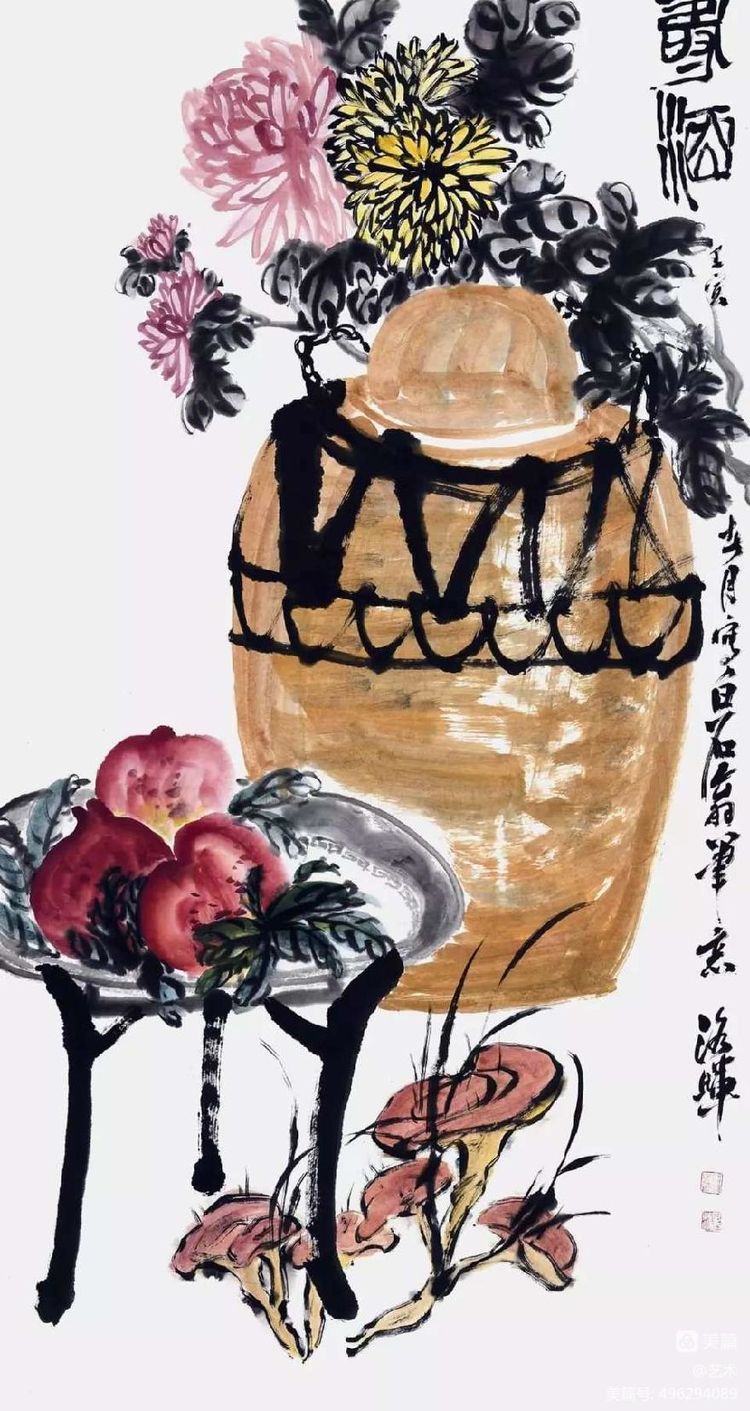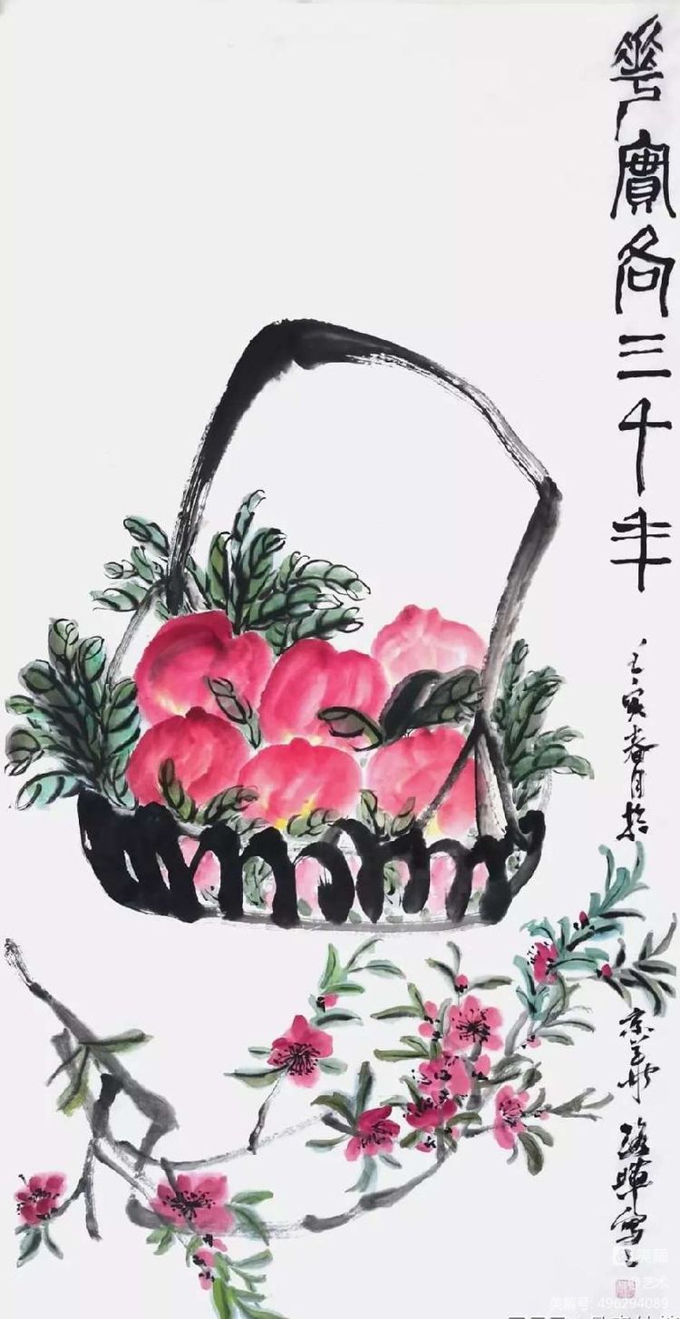 在突出表达传统笔墨功夫的同时,路晖女士的绘画方向还在笔墨当随时代的道路上作出了卓越而富有成果的前行。比如她画的寿桃作品有参意齐派的取法,但是在色彩的渲染上,却有更加时尚化的大胆表达,把桃子画得润泽无限,非常适合时代审美背景下的观众体验,这与当代审美追求阳光大气的方向完全合拍!这样的画当然有借古开今,独树一帜的魅力,装饰家居屏障寓吉呈祥,很令人适情切意!