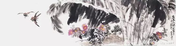 墨叶红花雅俗共赏,法度精研正大气象。《丛林过影图》里的时尚气息就更加鲜明了,以非常到位的写生功夫,画出了现代花鸟的时代气质,为中国画走出了一条现代化、国际化的正大路径,这毫无疑问是推高了花鸟创作在当代艺术体系中的审美地位,明显带有文化弘扬的推动力。画道精研,文化博涉,路晖既有扎实的丹青实践,还有勃勃向上的艺术思想。从这个角度来看,路晖女士的丹青创作不止于技法、审美的塑造成果,还拥有通过创造美的花鸟写意,引领着人们走进了发现美、感受美的文化新高地!