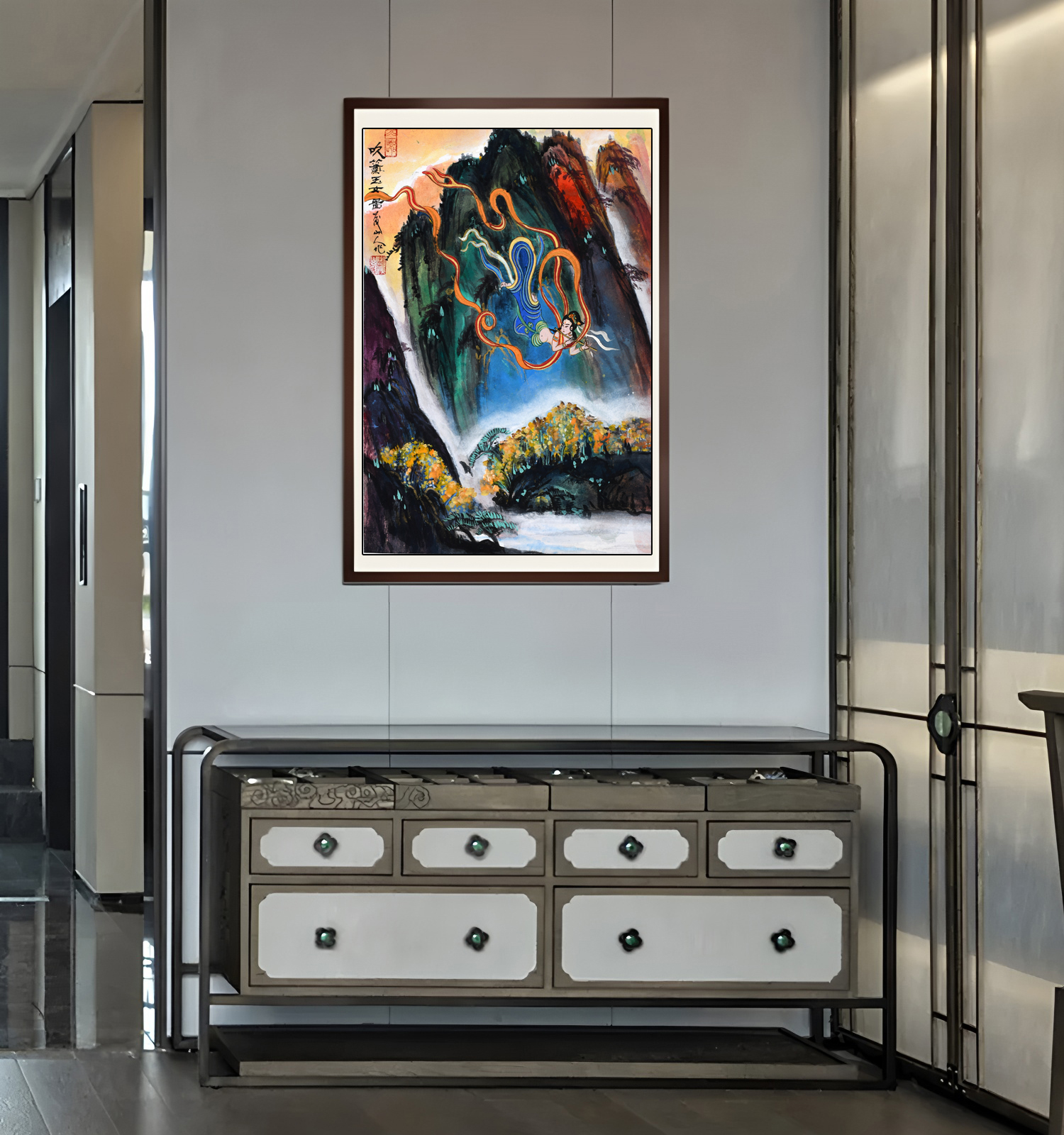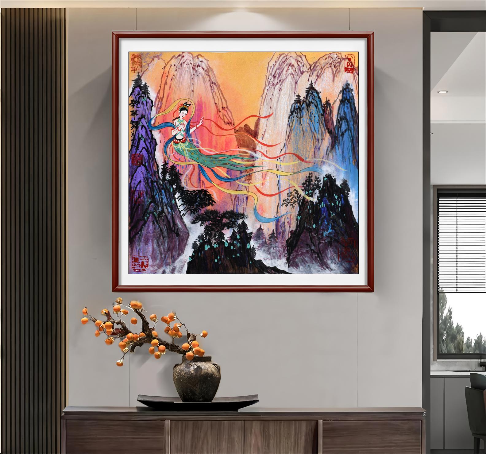 在东京的艺术馆,《观音光影》让无数观众久久不愿离去;在新加坡的文化展,《飞天乐舞图》被誉为“当代最能代表东方精神的绘画作品”。他不只是在传播艺术,更是在传播信仰、慈悲与文化的深意。他的画,让世界重新仰望东方文明。