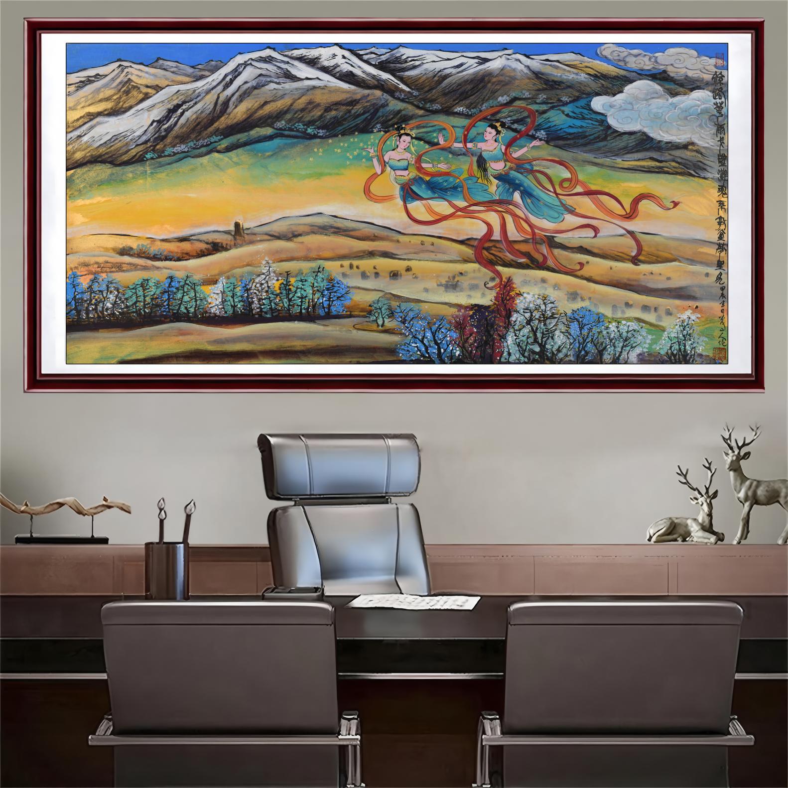 他的构图,庄严而辽阔,如同一场灵魂与宇宙的共鸣。他所创作的每一幅作品,都像是敦煌壁画的“现代再生”,它们不属于过去,也不只是现在,而是超越时间的存在。许多观众在他的展览中流下热泪,因为他们看到的,不是一幅画,而是一段民族的记忆,一种灵魂的觉醒。