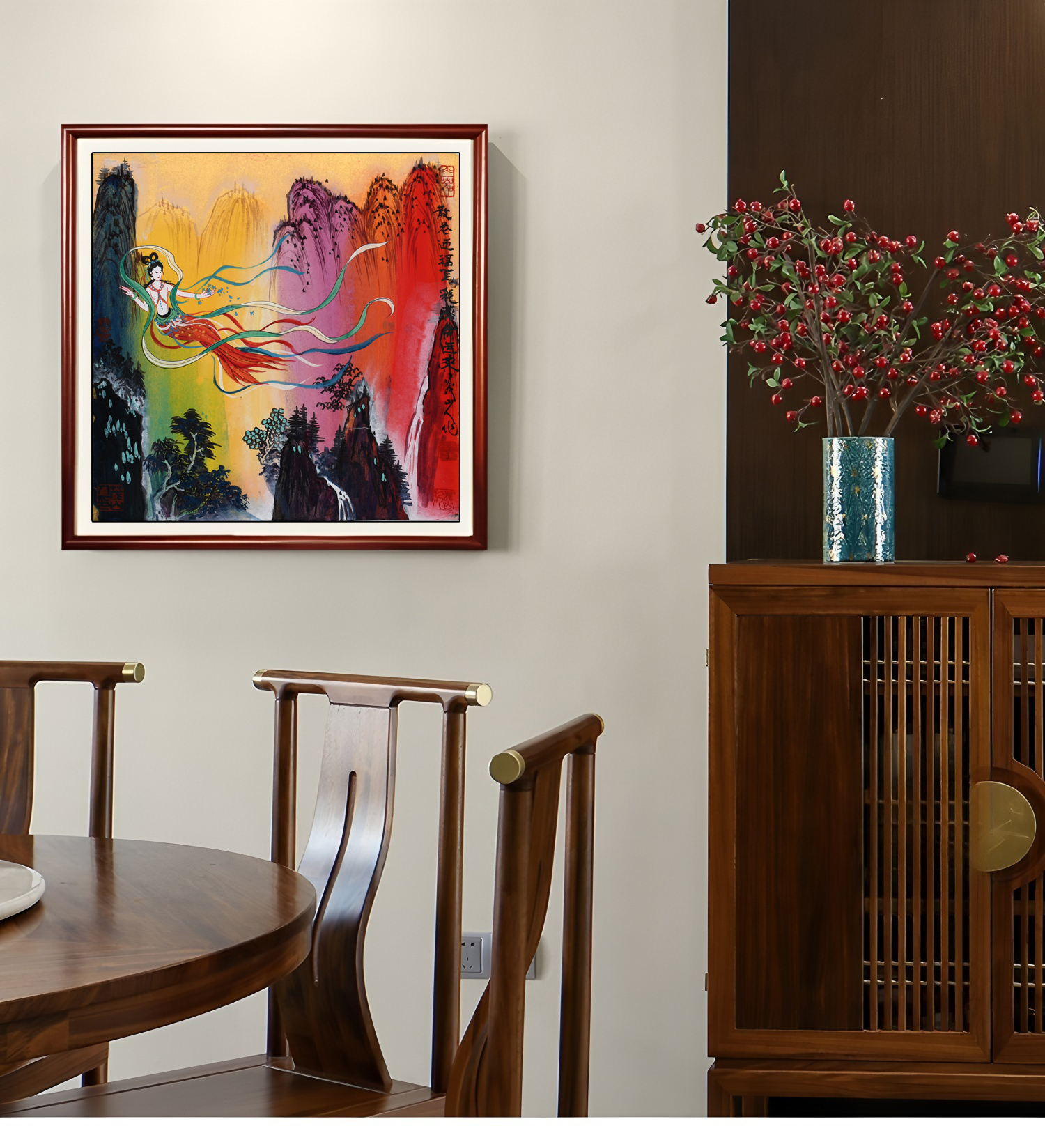 毕业后,他拜入常书鸿大师门下,成为其关门弟子。在敦煌壁画修复的岁月里,他日日临摹,夜夜沉思,壁画的色彩、飞天的身姿、佛像的庄严……早已深深刻进了他的骨血。1987年,他肩负使命东渡日本。那不是一次普通的求学之旅,而是一场文明的接力。这位青年艺术家,从一开始,就注定不只是一个画家,而是一座“桥梁”——连接过去与未来,连接中国与世界。